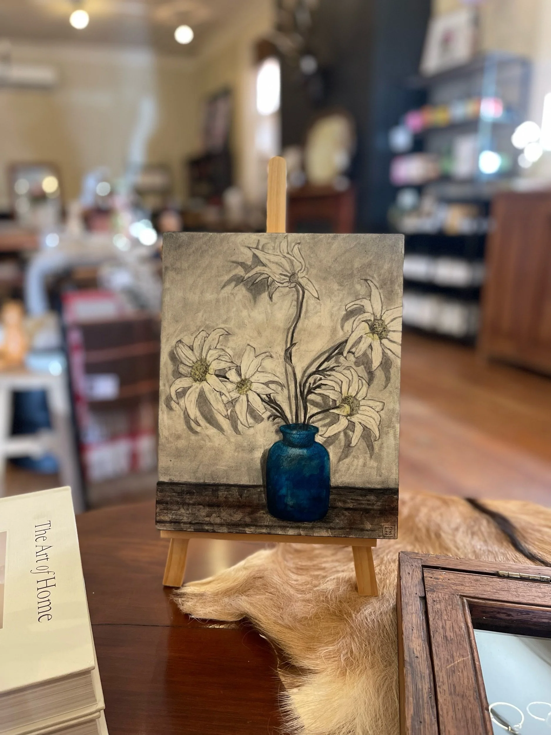 Image 1 of 2 Image 2 of 2 The Little Blue Pot $225.00 sold out Charcoal and ink on wood panel20.3cm x 25.4cm Sold Out Added! Charcoal and ink on wood panel20.3cm x 25.4cm